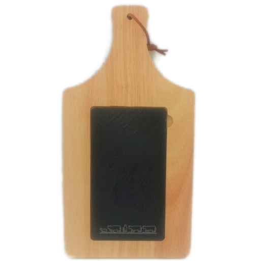 Servierbrett mit Griff Alpaufzug Holz/Schiefer