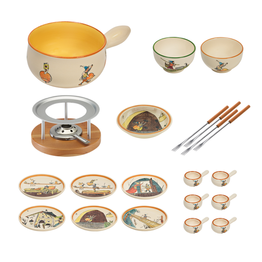 Käsefondue Set Alpenpanorama mit Teller schwarz