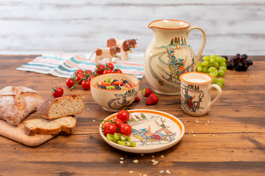 Schale Alpaufzug Ursli&Flurina Keramik 29cm