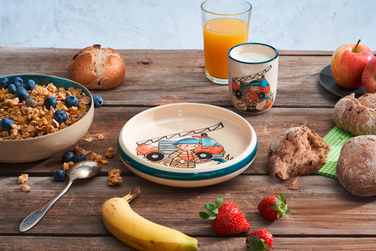 Set per bambini piatto+tazza in ceramica dei vigili del fuoco
