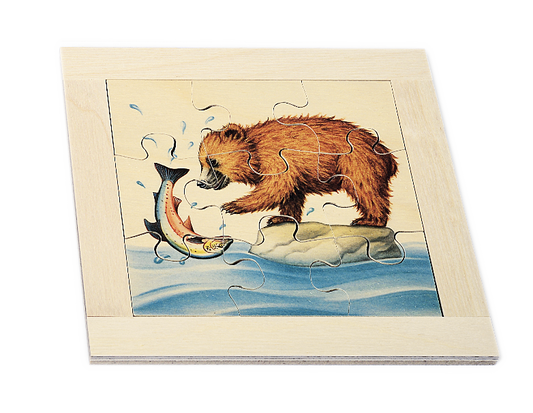 Puzzle di animali della foresta con manici, 9 pezzi, legno