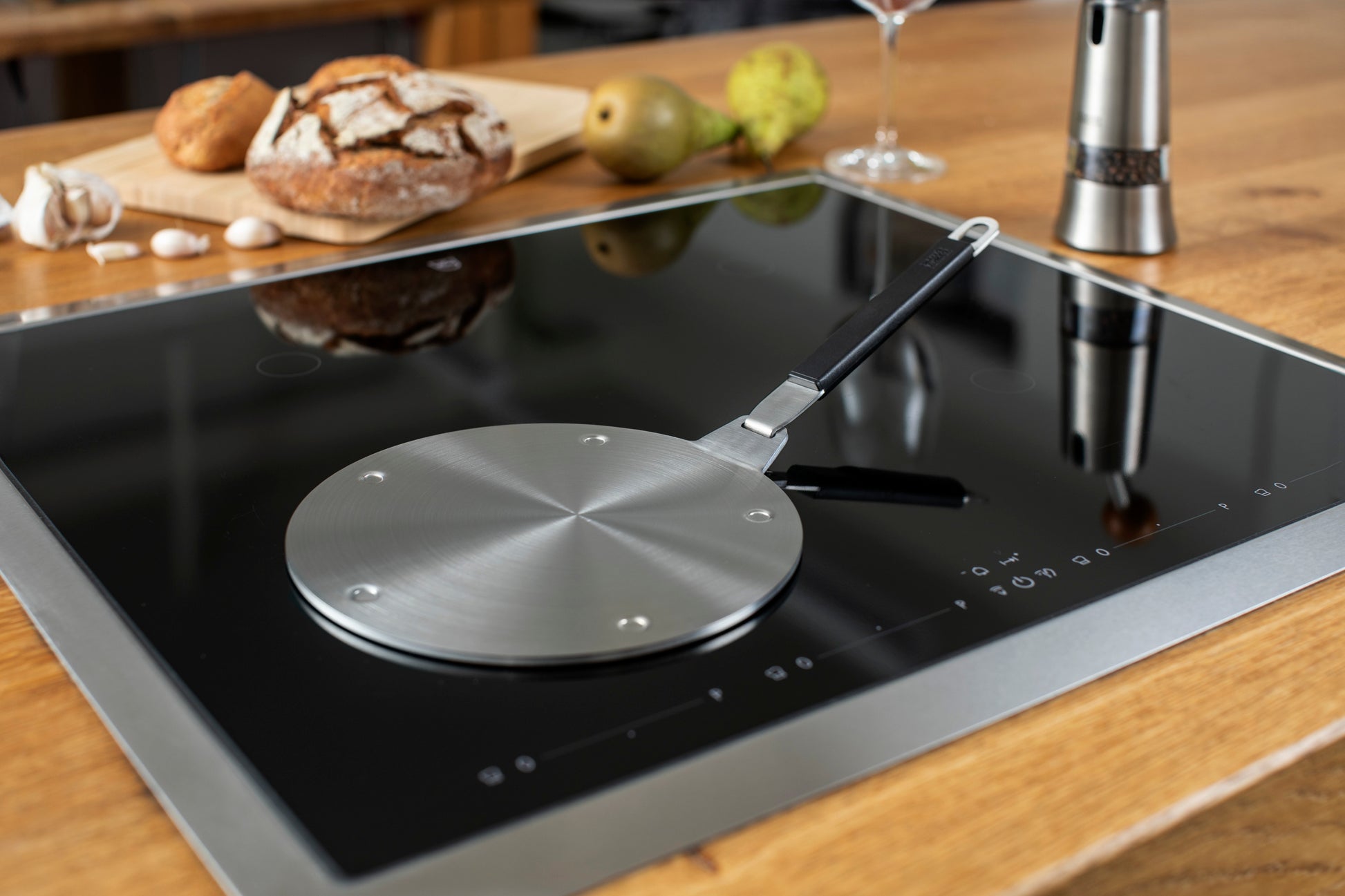 Adapterplatte wird sehr heiss und kann sich verfärben (ohne Funktionsverlust). Nicht ohne Kochgeschirr verwenden.