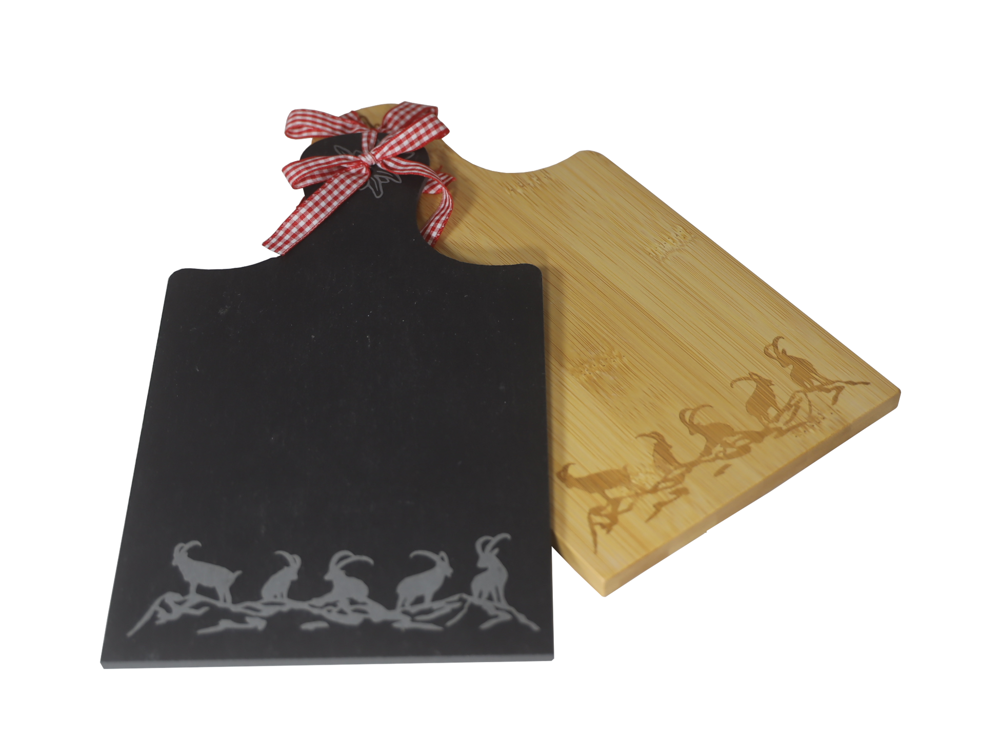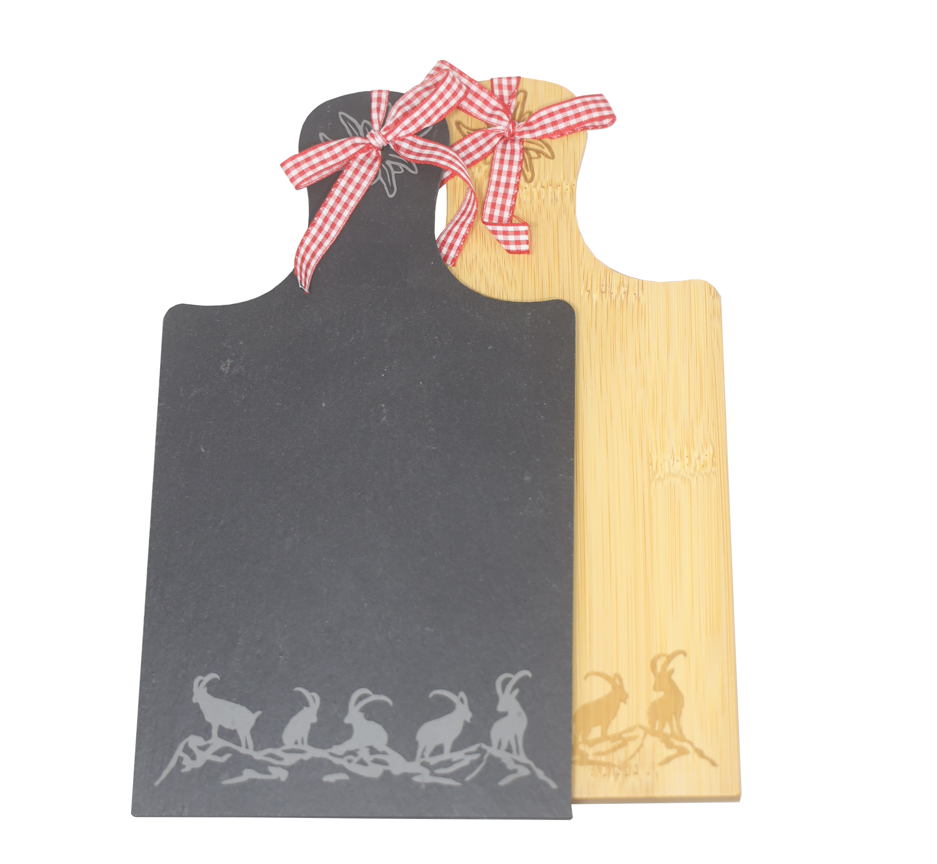 Servierbrett m. Griff Steinböcke-Silhouette Bambu/Schiefer Set